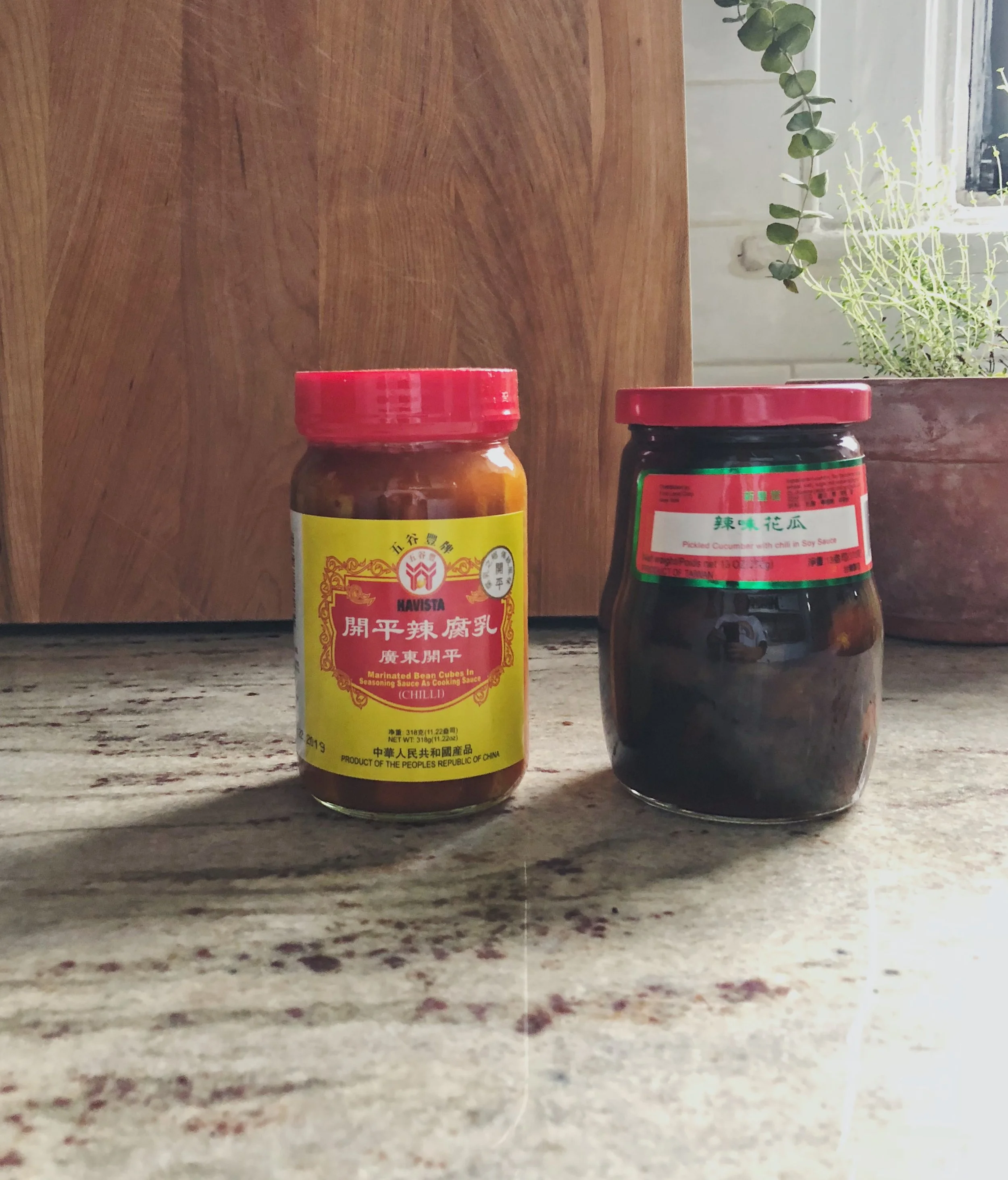 Usually #onthetable would be your bowl of basic congee and then a communal bowl of fûrû, and next to that the glorious Chinese Pickled Cucumbers. Exactly as they sound, they're cucumbers pickled in soy sauce and sugar. They come in a red can, one that brings me warm and fuzzy feelings every time I see it. The nostalgia runs deep. They have a satisfying crunch with a savory-sweet taste that goes perfectly with mushy white congee. I remember when we were visiting family in China, and basic congee was lunch one afternoon, I saw all the different pickled and fermented goods to pair with the congee. I threw a hissy fit because I didn't see THE Chinese Pickled Cucumbers. Ironically no one could find them, and I sulked the whole time, thinking how absurd it was that they didn't have my favorite addition—I mean the word "Chinese" was in the name!