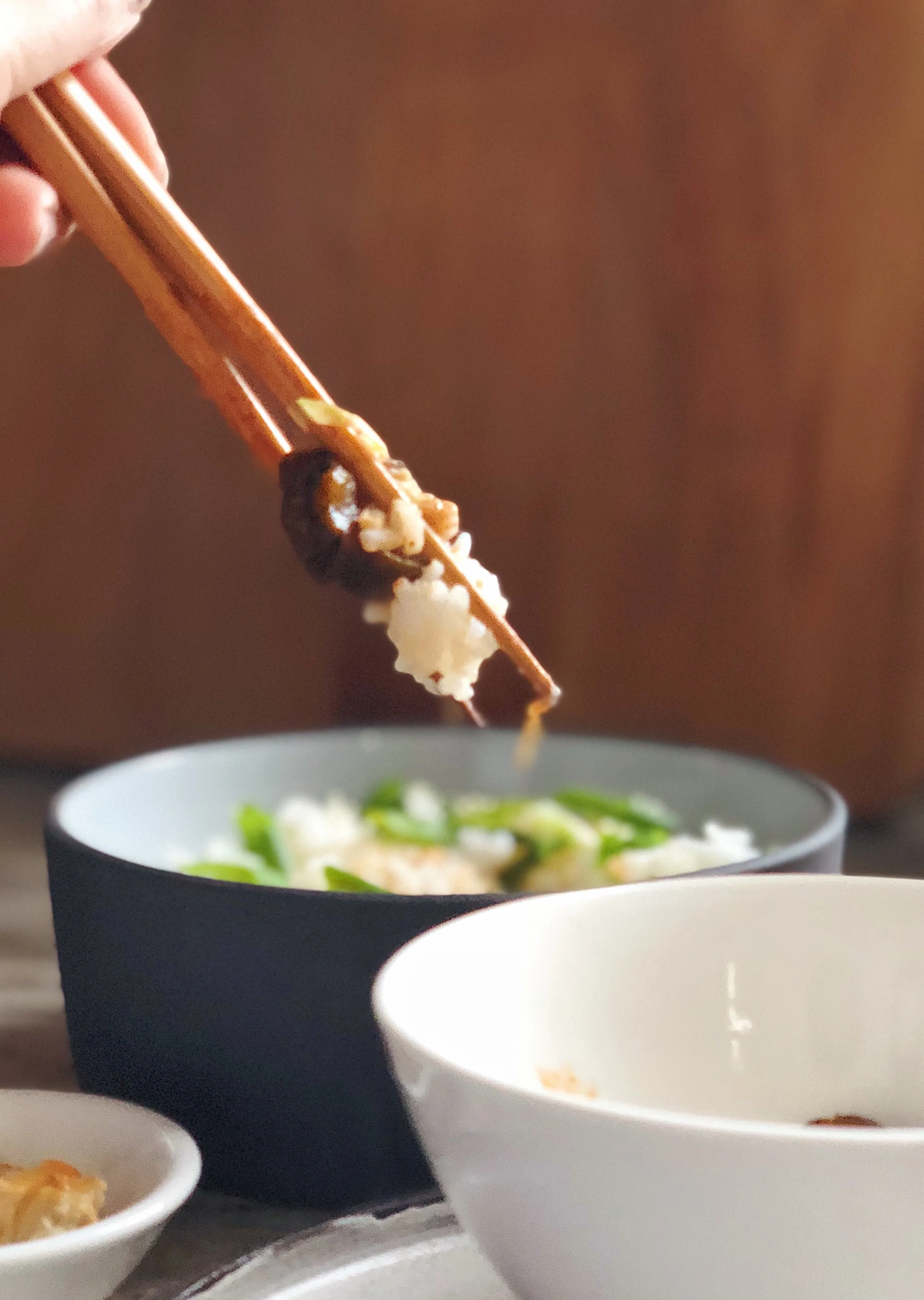 The thing about basic congee is that it's usually made from leftover rice—and Mom and Dad have been on a real health kick lately, blending their rice with quinoa...which I hate (the quinoa, not the rice). Growing up, Saturday afternoons were spent eating basic congee (known in Cantonese as bok juk, or white congee), when Mom was short for time, made with yesterday's plain-Jane white rice. And that's how it should be. I mean if you're a health nut, feel free to add quinoa, use brown rice, add hemp or chia seed, etc., but if you want this dish in its truest form—in the same way that village peasants would eat it in China—simply add rice and water.