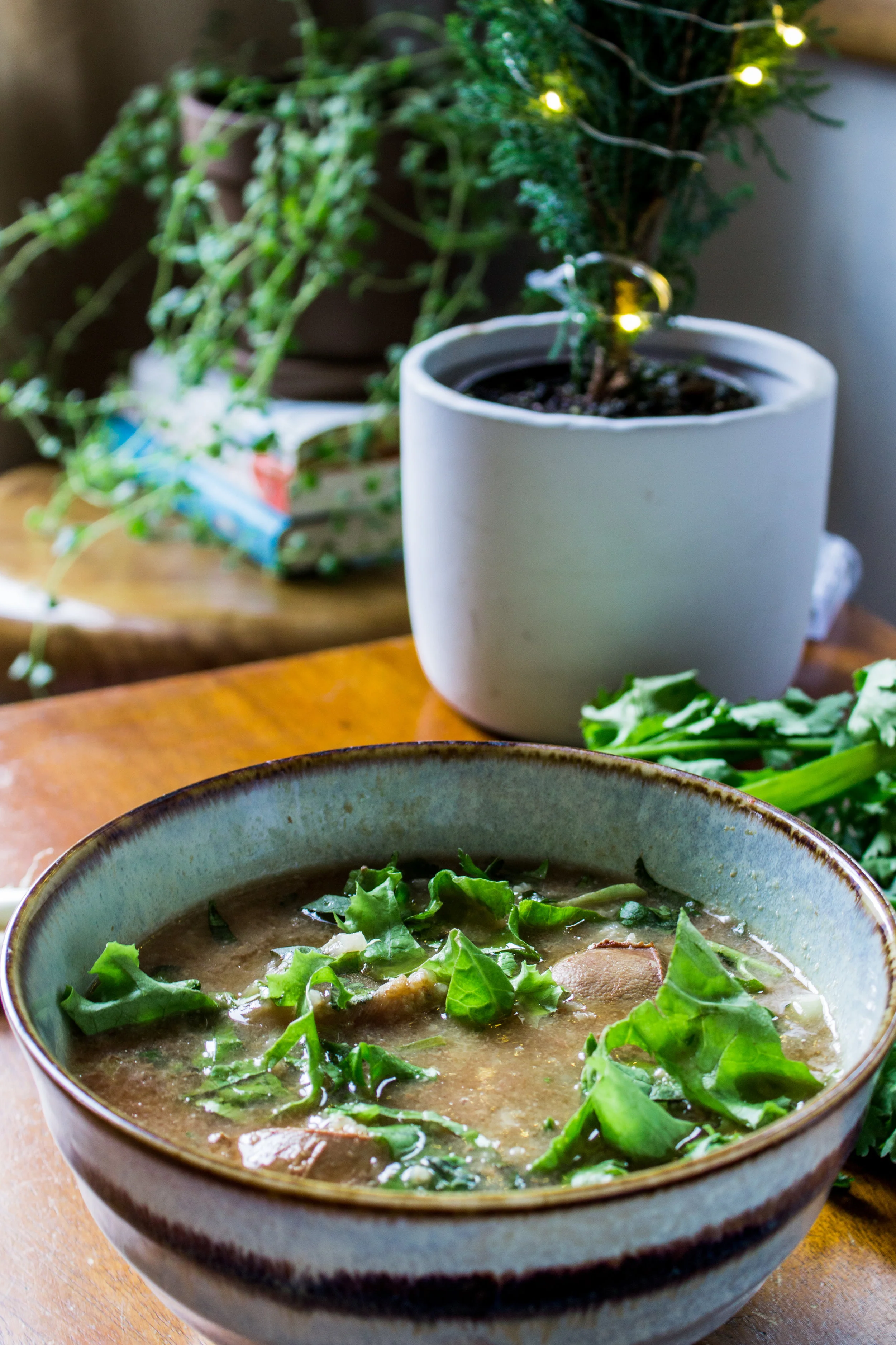 6. After about an hour and half to two hours, when the rice is broken down but the texture is still soupy rather than sludgy, take the offal from the fridge and stir into the congee.